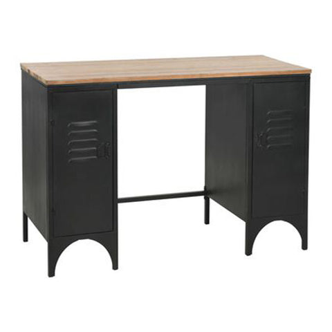 The writing desk consists of a sturdy steel frame and a solid firwood top and is highly robust and durable. The desk has 2 large cabinets which provide enough space for keeping your files, papers, documents and other office supplies within reach and neatly organised. The steel frame design adds an industrial look. The desk is easy to assemble.