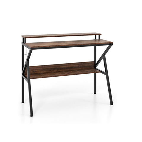 SPACE SAVING COMPUTER DESK WITH MONITOR STAND AND EXTRA STORAGE SHELF